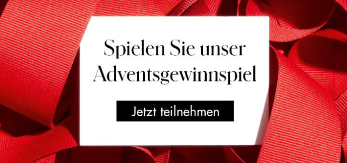 Freuen Sie sich auf wechselnde Tagesgewinne sowie einen exklusiven Hauptgewinn. Mit ausgewählten La Biosthétique-Produkten, Gutscheine unserer Mode- und Hotelpartner bis hin zu unserem exklusiven Hauptgewinn versüßen wir Ihnen die Zeit bis Heiligabend.
